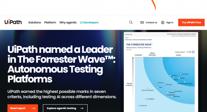 Description: UiPath provides RPA and AI workflows to automate repetitive tasks triggered by customer interactions.