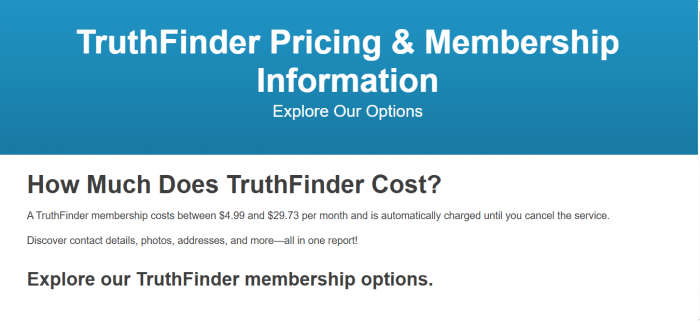 Current pricing (TruthFinder, late 2025–early 2026):