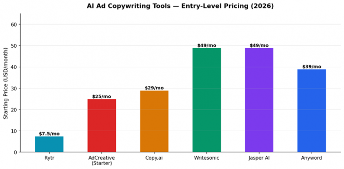 Anyword leads on performance data and conversion science. Jasper leads on brand consistency and team collaboration. Copy.ai leads on speed and simplicity. Writesonic leads on value. AdCreative.ai stands alone in combining copy and visual creative. And Rytr makes the whole category accessible to literally anyone.