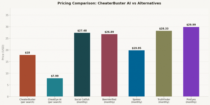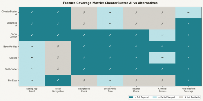| "I need to check Tinder specifically and cheaply" | CheatEye AI | Same Tinder focus as CheaterBuster at 60% lower cost per search |