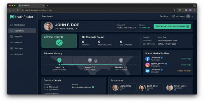 Yes, if your concerns go beyond dating apps. TruthFinder doesn't detect active Tinder profiles, but it tells you far more about who someone really is — past, present, and even their dark web exposure. If you're concerned about someone's history rather than just their current dating activity, this is the most powerful tool available.