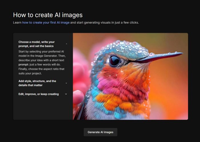Each model has a per-image cost based on resolution and model type. Full transparency is available via the AI Suite documentation and pricing pages, so users know how many AI-generated images they can produce.