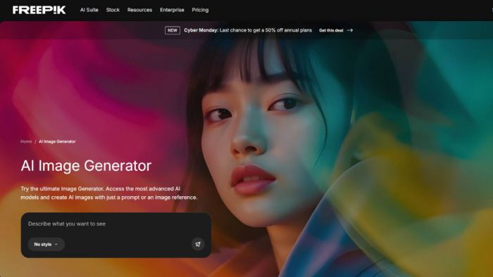 If you need to create images with AI but want less noise and more results, Freepik gets you there.
