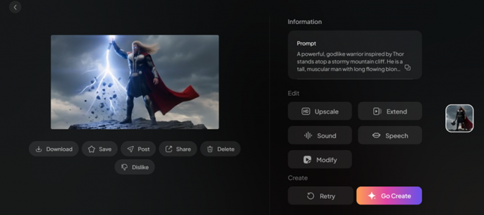 The environment made sense. The motion aligned well. The lightning effects and camera movement added depth. It felt like a real scene, not random animation.