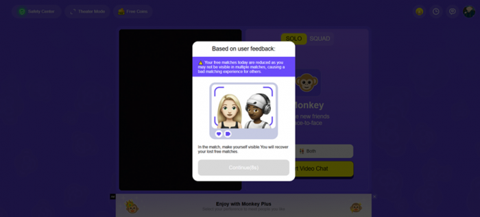 This sets the tone early. Access to better matching is not built into the core experience. It is gated behind ads, rewards, or payment.