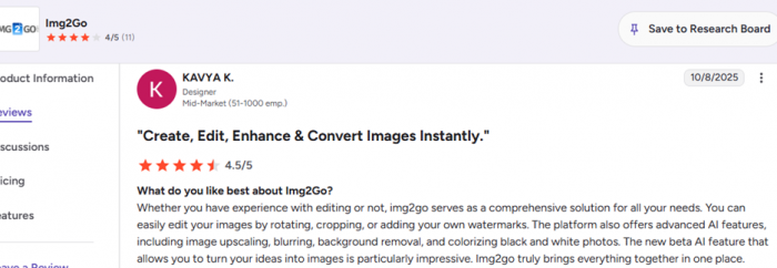 Img2Go enjoys generally positive feedback from users, but like any tool, it has both praise and criticism.