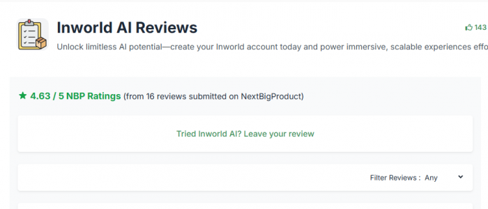 Many reviewers on NextBigProduct commented that signing up and integrating Inworld AI was simple and streamlined, often just requiring an email and a few clicks.