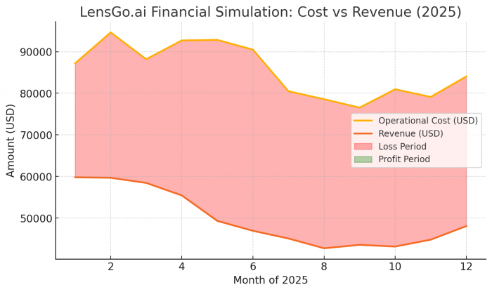 The combination of a freemium structure and high computational cost meant that for every 1,000 minutes of video rendered, LensGo.ai incurred higher processing expenses than its competitors, without comparable scale or recurring revenue to offset them.