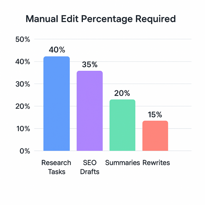 Light tasks → 10–15% manual edits