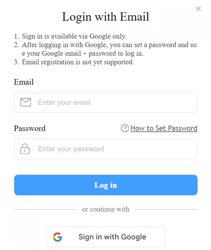 New users must sign up using Google.