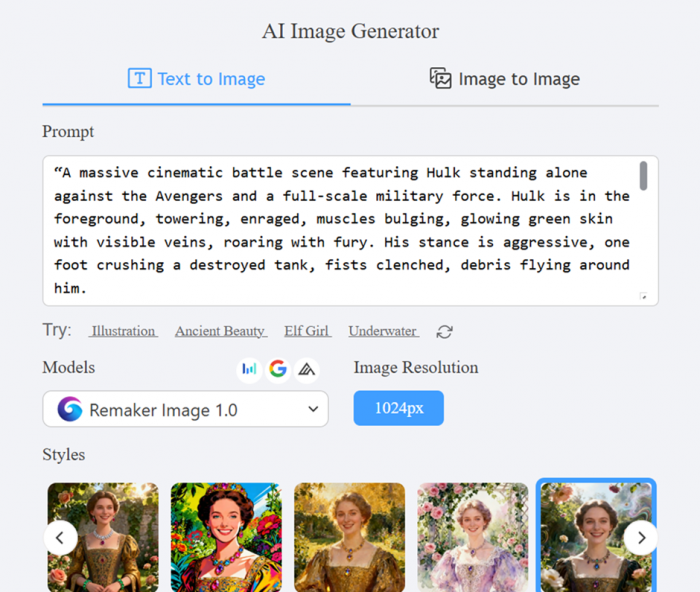 Remaker AI positions itself as a multi-purpose AI tool, combining writing and visual generation features into one interface. The platform includes more tools than what was tested here, but the focus is on the ones that directly reflect real output quality.