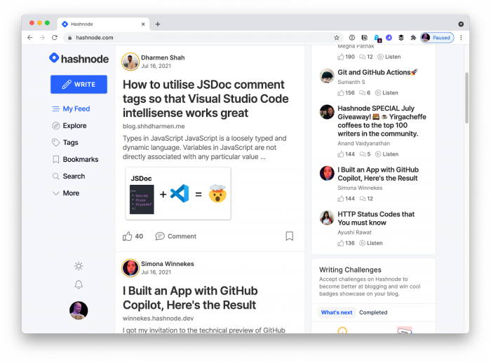 Hashnode is a blogging platform built specifically for the tech community. Its killer feature is that it lets you publish articles on your own custom domain for free, while also tapping into the platform's community for visibility. It's the best of both worlds.