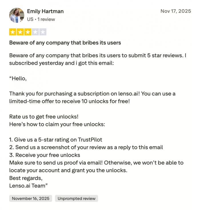 Not every experience is positive. A different group of reviewers highlights issues that are just as consistent as the praise. These concerns do not invalidate the platform’s strengths, but they help establish boundaries around what Lenso AI can and cannot do well.