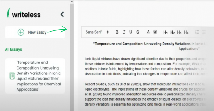 Writeless AI is a polished academic writing assistant that excels in structure, formatting, and efficiency. It takes much of the logistical burden off the writing process by automating bibliography creation and handling long-form outputs with ease. For students juggling multiple assignments, it can be a valuable starting point that helps break through writer’s block or organize ideas.