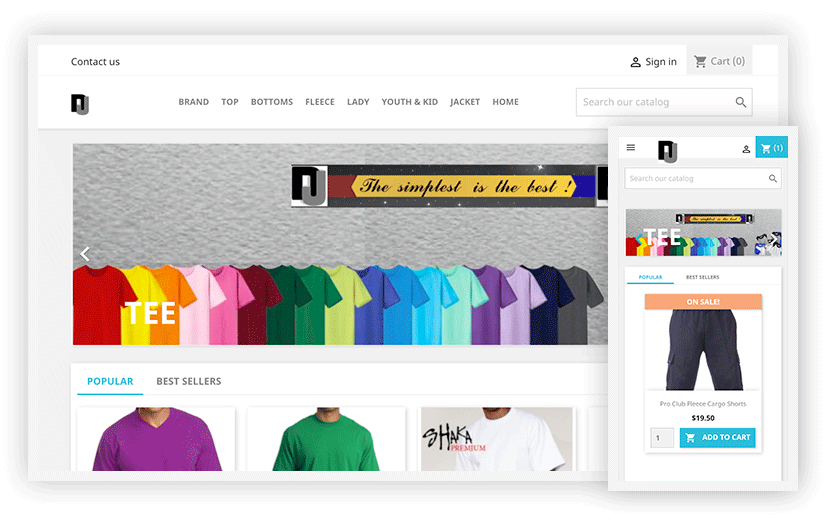 DJ Apparel is a project for companies in the industry of Consumer Products who want to put their brand on a t-shirt. We have created designs that fit this target, and we can print two different sizes and two different colors on a single piece of apparel.