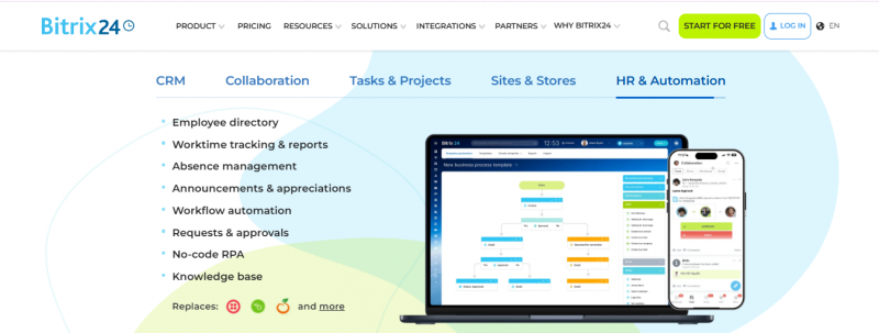 Bitrix24 is a unified workspace platform that integrates CRM, task and project management, team collaboration, messaging, and website building into a single ecosystem. The platform enables organizations to manage sales pipelines, automate business processes, coordinate team workflows, and communicate internally through integrated chat, video calls, and channels. It provides cloud storage, online documents, calendars, and a no-code website builder with e-commerce capabilities, all accessible from web and mobile applications. The CRM functions as the centerpiece, designed to help acquire leads, manage customers, and close deals.