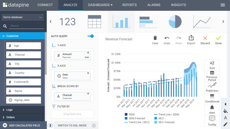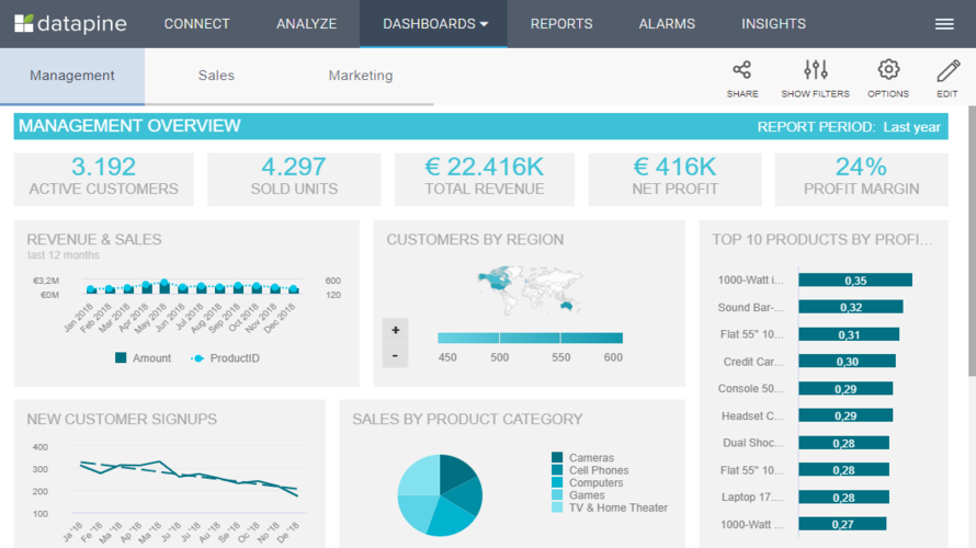 datapine supports self-service analytics workflows, enabling teams to explore complex datasets, identify patterns, automate reports, and share insights company-wide. Datapine is suitable for mid-sized to large businesses across functions such as marketing, sales, operations, and executive leadership that depend on data visualization and performance monitoring.