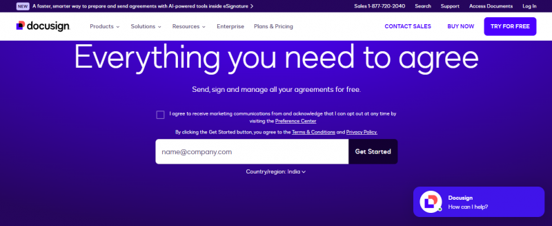 DocuSign eSignature enables sending documents for electronic signatures from any device. Users upload files, add signers, place signature and form fields via drag-and-drop, and send for completion. Signers apply signatures by drawing, typing, or uploading images, with options for authentication like SMS or ID verification. The platform provides real-time notifications, automated workflows, cloud storage, and audit trails. AI-assisted tools from Docusign Iris detect agreement types, suggest fields, summarize terms, and offer Q&A. Integrations connect with apps like Salesforce, Microsoft, and Google. Security includes enhanced signer identification, data verification, and fraud detection for compliance with standards like eIDAS AES and QES.