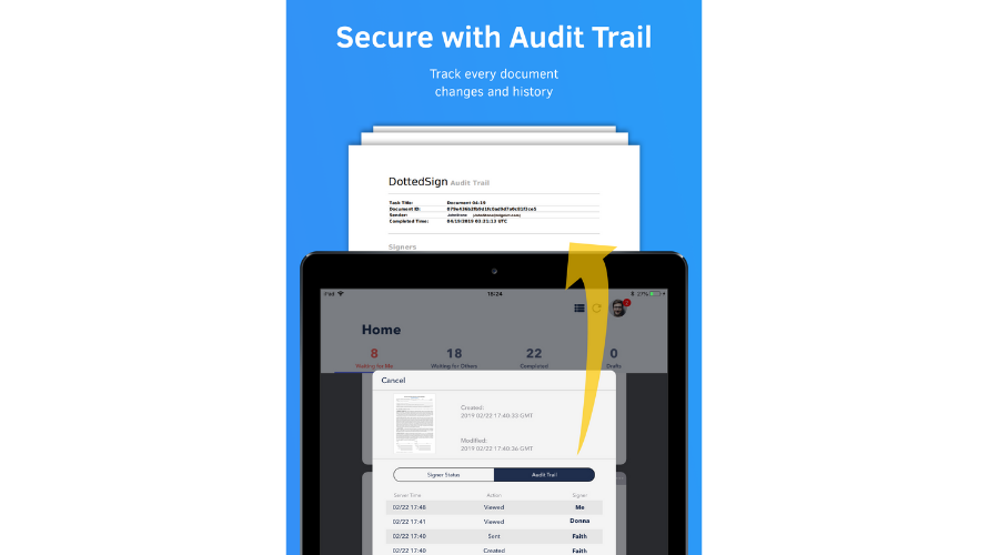 DottedSign standardizes document signing with real-time tracking, automated notifications, and an intuitive interface for swift onboarding. It offers SaaS, API, and self-hosted deployment options. Users create sign-ready templates from standard documents such as employee agreements, NDAs, and proposals. The admin console centralizes document control and task management with role based access levels. Integration connects with Google Drive, Gmail, Salesforce, Microsoft Teams, and Zapier.