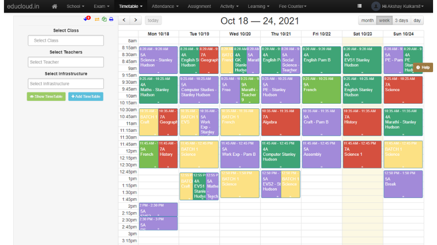 Supports admissions, attendance, timetable, transport, fees