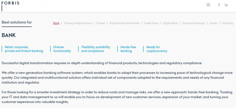 Forbis functions as a digital engagement layer that connects to core banking systems and external services via APIs. Banks configure customer journeys, features, and workflows using modular components that can be deployed incrementally across channels.
