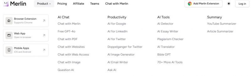 Merlin AI is a versatile Chrome extension and cross-device AI assistant (web, iOS, Android) integrating top-tier models GPT-4/4o, Claude 3.x, Gemini, Mistral, Llama, DeepSeek for real-time summarization, writing, code generation, diagrams, image creation, AI detection, and more.