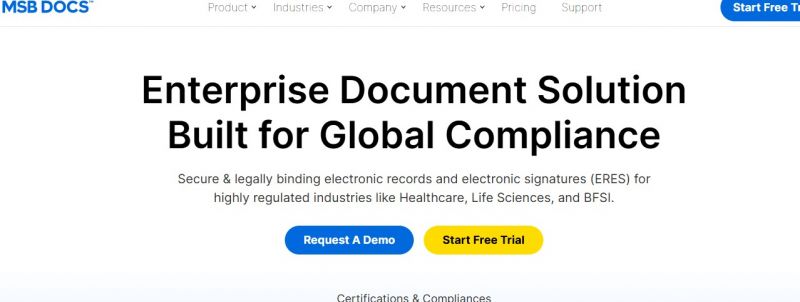 MSB Docs provides secure and legally binding electronic records and electronic signatures for regulated industries. It enables signing and managing documents with regulatory compliance, audit trails, and workflow automation. The platform addresses manual processes involving paper, printing, scanning, and signature delays that increase errors and compliance risks. Features like eSignature, eAsset Management, CLM, Smart Forms, eStamp, eKYC/KBA, and CRA Scan App support document processing across sectors such as healthcare, life sciences, BFSI, insurance, legal, HR, and education. Integration with CRMs, ERPs, DMS, HRMS, eQMS, and CLM occurs via APIs. Mobile app dashboard manages incoming and outgoing signature requests, electronic signature appearance, document status, and carbon footprint tracking.