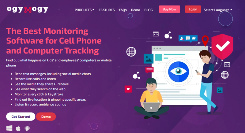 OgyMogy is monitoring software that enables remote tracking and activity surveillance across Android devices, Windows PCs, and Mac computers. The platform allows users to monitor keystrokes, social media activity, web browsing, email communications, and device location. Core features include live camera access, screen recording, call log monitoring, and the ability to block specific websites. Installation requires one-time physical access to the target device, after which monitoring occurs remotely through a web control panel. The software operates in stealth mode without user awareness. OgyMogy positions itself for parental control of children's devices and employee productivity supervision on company-owned equipment.