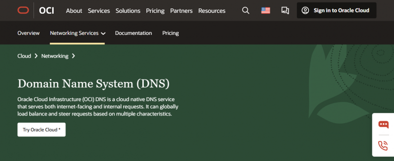 Oracle DNS enables configuration and management of global DNS through the OCI console. It supports primary and secondary zones for internet-facing DNS and private DNS for internal workloads within VCNs. Users view all managed zones, import records, and create automatic HTTP or HTTPS redirects. The service distributes requests across regions based on destination, health, and source location. It integrates with OCI for setup, monitoring, identity management, zone and record creation, query reports, and DDoS protection. A global anycast network with over 300 locations handles resolution.