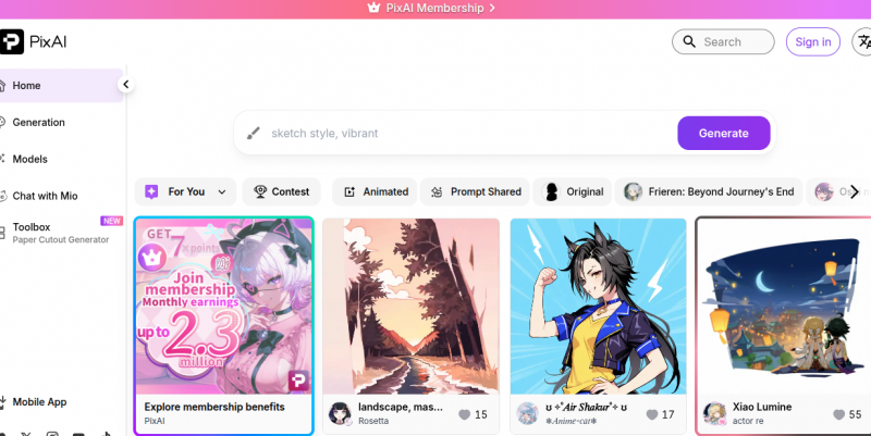 PixAI.art Lets Users Generate And Explore Anime-Style Artwork And Visual Creations With A Focus On Fast Image Production And A Community-Driven Model Marketplace.