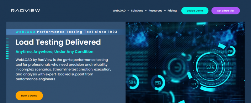 WebLOAD is a performance testing platform that enables teams to proactively test system behavior under various load conditions. It automates script creation through recording and correlation, handles dynamic values automatically, and provides real-time analytics to identify performance bottlenecks. The tool supports multiple protocols including HTTP/HTTPS, WebSocket, SOAP, and HTML5, and can be deployed in cloud, on-premises, or hybrid environments. RadView has positioned WebLOAD around three core capabilities: simplified script creation with automatic dynamic value management, flexible load execution across deployment models, and AI-powered analytics for performance optimization.