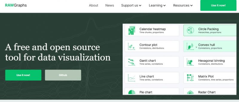 RAWGraphs converts tabular data into vector-based visualizations without coding. It processes data client-side in the browser, handling formats like CSV, TSV, JSON, pasted text, URLs, or SPARQL queries. Users select from nearly 30 chart types, map data fields to visual variables via drag-and-drop, customize appearance, and export as SVG or PNG. Built on D3.js, it bridges spreadsheet applications and vector graphics editors by producing editable SVG outputs. All operations occur locally with no server storage.