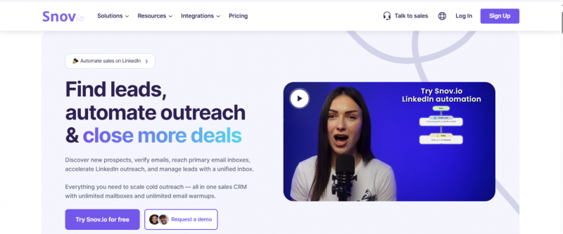 Snov.io combines cold email, sales outreach, LinkedIn automation, and email finder tools into one platform. It simplifies lead generation by enabling domain search, single email search, and LinkedIn prospect finding. Users verify emails through a 7-tier process to reduce bounce rates and maintain database cleanliness. The platform supports automated email sequences with follow-ups, mailbox warm-up to improve deliverability, and a sales CRM for managing pipelines, deals, and tasks. Multichannel campaigns integrate email and LinkedIn actions on autopilot. Integrations connect with over 5,000 tools including HubSpot, Pipedrive, and Zapier.