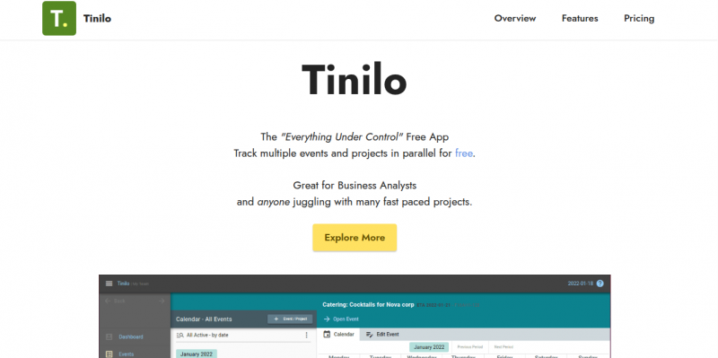 Tinilo tracks any number of events or projects. Users select a target date, start time, and end time for them. Everything else attaches to an event, including staff assignments and assets like rooms or equipment. It prevents double booking of assets and staff. Expenses track for events and projects, serving as a quoting mechanism, cost calculator, or expense tracker. Milestones use fixed dates or back-scheduling, where dates calculate automatically before the target event date.
