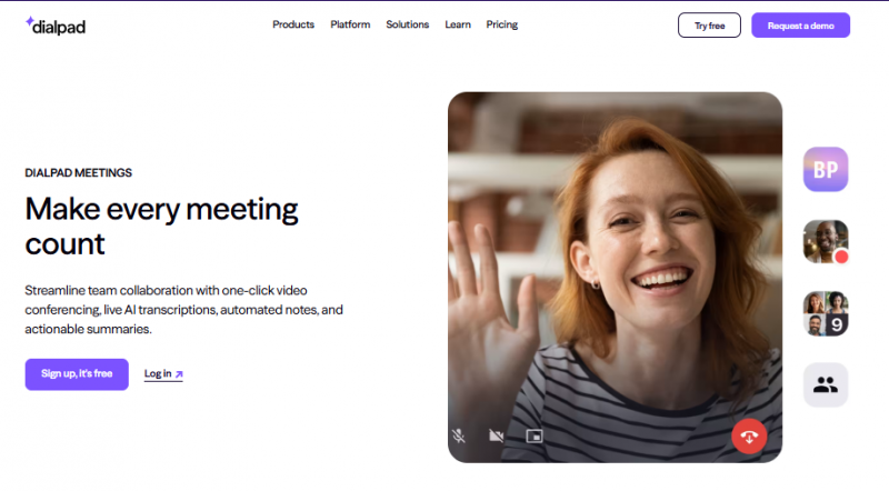 Dialpad Meetings provides video conferencing with AI tools for transcriptions and summaries. It supports hosting meetings with up to 150 participants and durations up to five hours on the Business plan. The free plan offers unlimited meetings limited to 10 participants and 45 minutes. Real-time transcripts and post-meeting summaries keep participants focused. Video recordings capture sessions. Add-ons include rooms licenses and toll-free dial-in numbers. This separates video functionality from Dialpad's core phone system.
