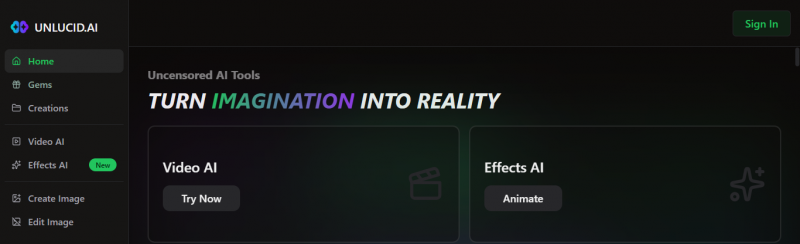 Unlucid AI provides browser‑based creative tools for generating short videos and enhanced images using AI. It targets creators and social content makers by turning image prompts into animated clips with pre‑built visual effects. The platform combines video generation, image editing, and image creation under one suite. Users operate on a gem credit system that fuels outputs. Starter usage can be free with daily gems, and larger credit packs unlock higher‑volume image and video generations.