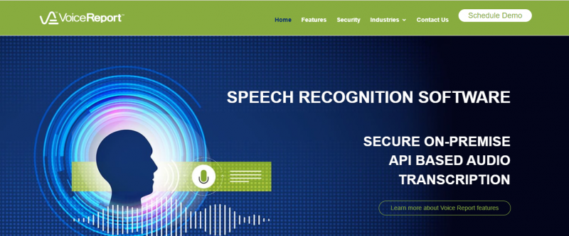 Voice Report enables dictation of reports and forms using speech recognition powered by Nuance engine with 95% accuracy. Users dictate via toll-free call, mobile app, digital recorder, PC, or tablet without needing a computer or special hardware. The system supports on-premise deployment for data control, device-independent access with military-grade encryption, photo capture in reports, customizable workflows for approvals and priorities, custom vocabulary expansion beyond 300,000 words, automatic transcription, word-highlight audio player for corrections, priority processing, and API integration with CRM, ERP, or existing software. Flexible online or offline recording options and analytics for custom reports are included.