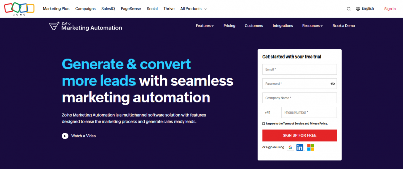 Zoho Marketing Automation is a marketing platform designed to help businesses capture, nurture, and convert leads through powerful workflows, behavioral analytics, and CRM integration. It streamlines campaign planning, automates personalized communication, and provides detailed engagement insights to optimize marketing performance.
